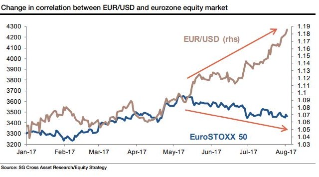 11.08.2017 Chart des Tages Eurostärke belastet den europäischen Aktienmarkt. Der Euro hat seit Jahresbeginn kräftig zugelegt.