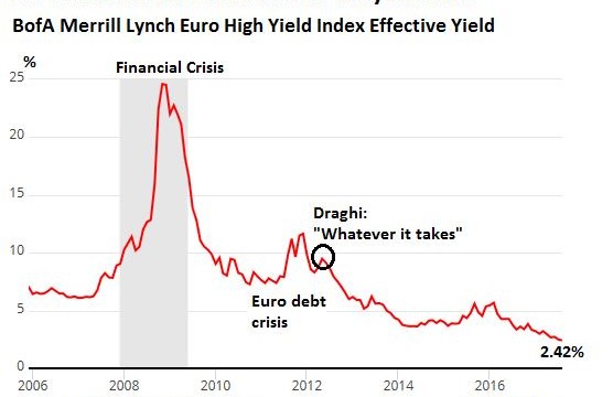 09.08.2017 Chart des Tages Ausnahmezustand am Bondmarkt. Hoch riskante Anlageklassen stehen dank der Jagd nach Rendite ganz oben auf dem Wunschzettel der Anleger.