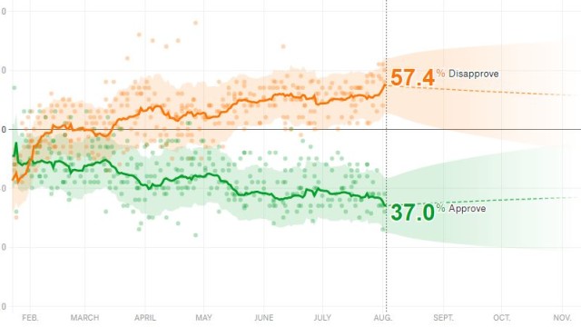 04.08.2017 Chart des Tages Trump im Umfragetief. Der amerikanische Kongress hat sich in die Sommerferien verabschiedet.