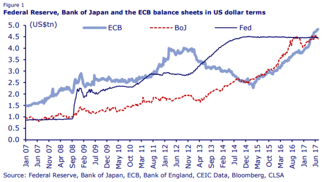 21.07.2017 Chart des Tages Meine ist grösser als deine. Mario Draghi will noch nichts von einem Ende des laufenden Anleihenkaufprogramms (Quantitative Easing, QE) der Europäischen Zentralbank wissen.