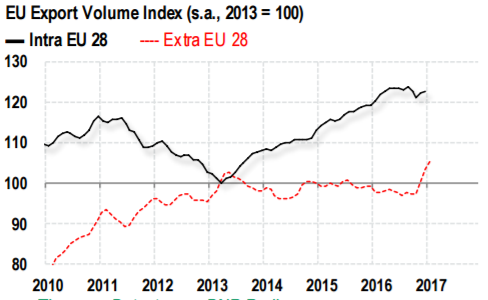 08.05.2017 Chart des Tages Europas Export-Rätsel. Donald Trump ärgert sich über die Abwertung des Euros in den vergangenen Jahren.