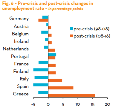 03.04.2017 Chart des Tages Arbeitsplatzverlust vor und nach der Krise. Europas Wirtschaft ist tief gespalten.