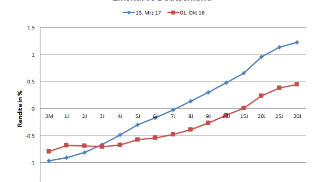 15.03.2017 Chart des Tages Weshalb sich die Zinskurve dreht. Seit rund einem halben Jahr ziehen die Anleihenrenditen global an.