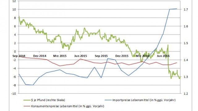 17.08.2016 Chart des Tages Die Brexit-Quittung kommt an der Supermarktkasse. Der Pfundkurs ist das deutlichste Zeichen für die Verwerfungen, die durch die Brexit-Abstimmung am 23.