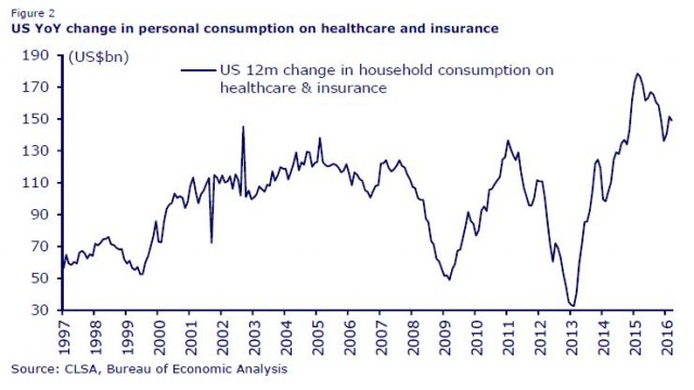 31.05.2016 Chart des Tages Gesundheitskosten belasten US-Haushalte. Die amerikanische Wirtschaft ist im ersten Quartal annualisiert 0,8% gewachsen.