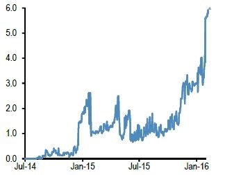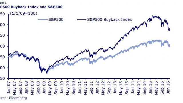 16.02.2016 Chart des Tages Geht den Aktienrückkäufen die Luft aus? Corporate America setzt auch im neuen Jahr auf Aktienrückkäufe (Buybacks): In den ersten fünf Wochen haben S&P-500-Konzerne Rückkaufprogramme im Umfang von 63 Mrd.