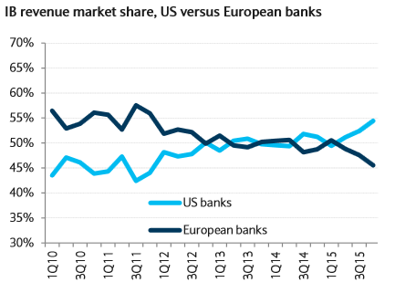 18.02.2016 Chart des Tages Europas Banker sind Verlierer. Investment Banking ist wieder eine Disziplin, in der die US-Grossbanken dominieren.