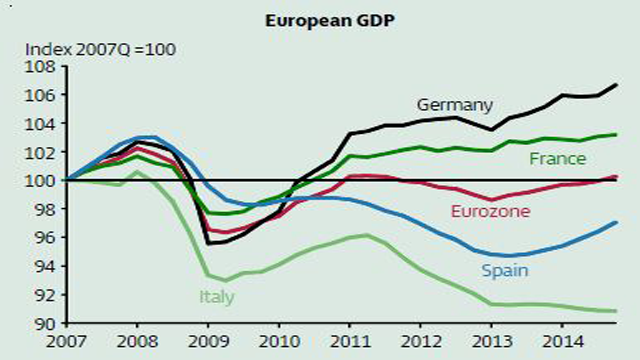 11.05.2015 Chart des Tages Europa muss dringend wachsen. Im Mittelpunkt stehen diese Woche die Schätzungen für das europäische Wirtschaftswachstum im ersten Quartal.