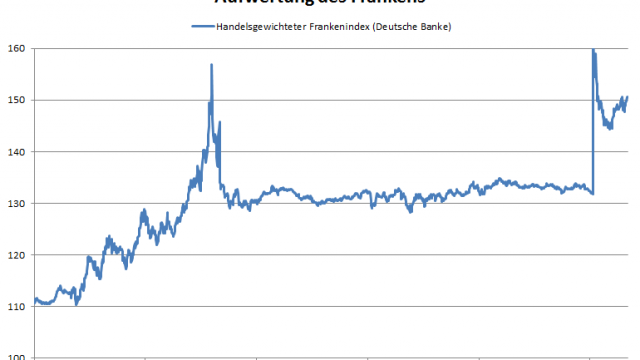 08.05.2015 Chart des Tages Das Aufatmen war verfrüht. «Was wir jetzt sehen, ist ein massives Überschiessen», sagte SNB-Präsident Thomas Jordan, als sich der Franken nach Aufgabe des Euro-Mindestkurses scharf aufwertete.