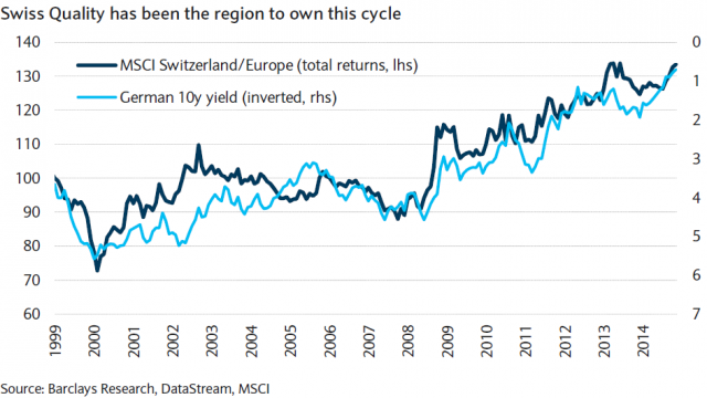 11.12.2014 Chart des Tages Underweight Switzerland. Es kann sich kaum jemand beklagen über die Performance von Schweizer Aktien über die letzten Jahre.