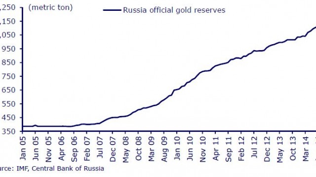 24.11.2014 Chart des Tages Russlands Notenbank deckt sich mit Gold ein. Während die Schweizerische Nationalbank dafür kämpft, dass nächsten Sonntag die Goldinitiative abgelehnt wird und sie ihre Goldreserven dann nicht fast verdreifachen muss, denkt die Schwesterbehörde in Russland ganz anders über den Wert des gelben Metalls.