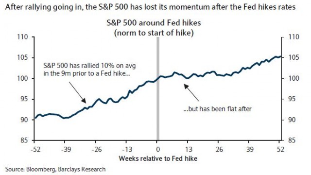 18.11.2014 Chart des Tages Der S&P 500 verliert nach Zinserhöhungen an Dynamik. Nach dem Auslaufen des Stimulusprogramms QE3 (Quantitative Easing, QE) warten die Finanzmärkte auf die erste Zinserhöhung der US-Notenbank (Fed) seit August 2007.