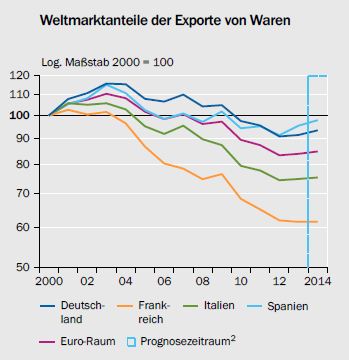 17.11.2014 Chart des Tages Europas Exporteure verlieren Marktanteile im Welthandel. Als Beleg dafür, dass die Eurokrise überstanden ist, verweisen Experten meist auf die Leistungsbilanzdefizite der Problemländer, die in den vergangenen zwei Jahren beträchtlich zurückgegangen sind.