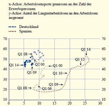 13.10.2014 Chart des Tages Langzeitarbeitslose: Deutschland und Spanien im Vergleich. Das grösste Problem der Eurostaaten sind nicht die Schulden, sondern die hohe und wachsende Zahl an Arbeitslosen.
