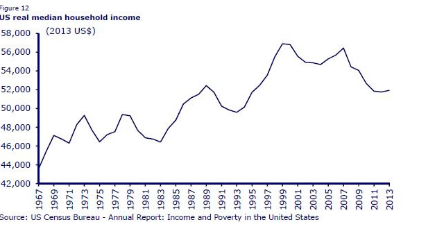 10.10.2014 Chart des Tages US-Haushalteinkommen steigen kaum. Die US-Wirtschaft erholt sich langsam, aber stetig von den Folgen der Weltwirtschaftskrise.