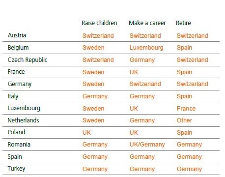 29.09.2014 Chart des Tages Wo lebt es sich in Europa am besten? Welches europäische Land bietet Ihrer Meinung nach die idealen Voraussetzungen, um a) Kinder grosszuziehen, b) Karriere zu machen und c) sich zur Ruhe zu setzen?