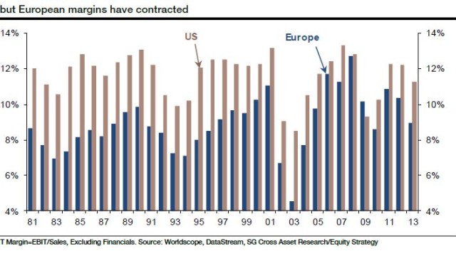 23.09.2014 Chart des Tages Margen: Aufholpotenzial in Europa. Quelle: Société Générale Nach einem Knick infolge der Wirtschaftskrise verzeichnen europäische Unternehmen seit 2010 wieder einen höheren Umsatz, 2013 wiesen sie Rekordeinnahmen aus.