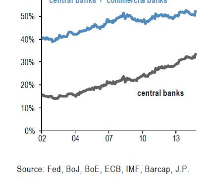 07.10.2014 Chart des Tages Die Zentralbanken trocknen den Bondmarkt weiter aus. Wie die Grafik zeigt, haben die Zentralbanken in den vergangenen Jahren immer mehr Bonds auf ihre Bücher genommen.