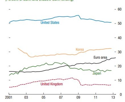 02.10.2014 Chart des Tages Aufstieg der Schattenbanken. Natürlich werden Finanzaufseher nervös, wenn sich ausserhalb ihrer Zuständigkeit ein Finanzsystem entwickelt.