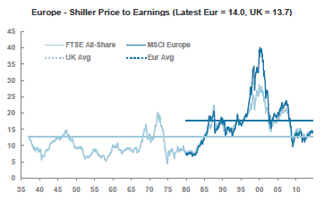 21.08.2014 Chart des Tages Shiller spricht für Europa. Wer langfristig investiert, sollte sich an langfristige Bewertungsmasse halten.