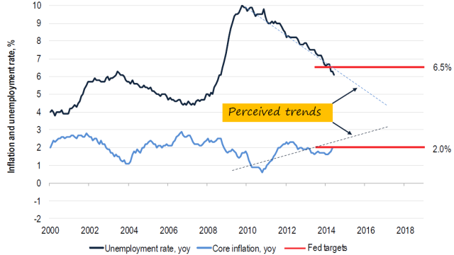 08.07.2014 Chart des Tages Mission accomplished. Quelle: Ineichen Research & Management Die amerikanische Notenbank (Fed) hat seit Ende der Siebzigerjahre einen dualen Auftrag zu erfüllen.