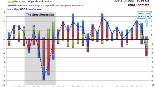 01.07.2014 Chart des Tages Das US-BIP in Einzelteilen. Quelle: Dshort.com Die US-Wirtschaft hat im ersten Quartal 2014 einen empfindlichen Dämpfer erlitten: Das reale Bruttoinlandprodukt (BIP) ist im Vergleich zum Vorjahreszeitraum 2,9% geschrumpft.