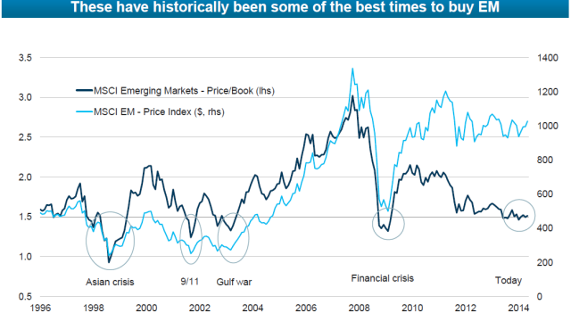 06.06.2014 Chart des Tages Jetzt Emerging Markets kaufen. Quelle: Barclays Aktien aus Schwellenländern sind günstig.