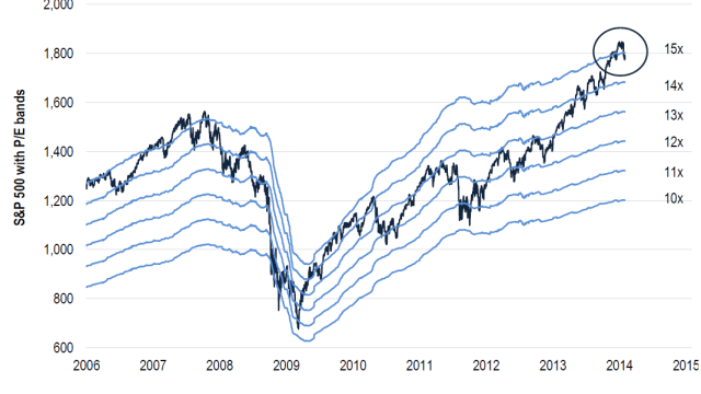 03.02.2014 Chart des Tages Für US-Aktien wird die Luft dünn. Quelle: Ineichen Research & Management Der obige Chart zeigt die Entwicklung des S&P 500 und fünf «Bänder».