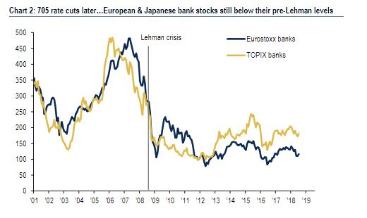 21.08.2018 Chart des Tages Flaute in europäischen und japanischen Banken. Am fünfzehnten September jährt sich der Kollaps der amerikanischen Investmentbank Lehman Brothers zum zehnten Mal.