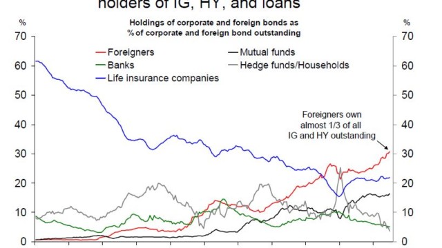 19.06.2018 Chart des Tages US-Unternehmensanleihen in ausländischer Hand. Auf der Suche nach attraktiver Rendite sind internationale Bondanleger in den vergangenen Jahren bei amerikanischen Unternehmensanleihen fündig geworden.