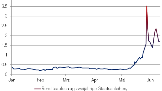 12.06.2018 Chart des Tages Italien im Gefühlschaos. Noch Ende Mai hatte die italienische Regierungskrise die Finanzmärkte fest im Griff.