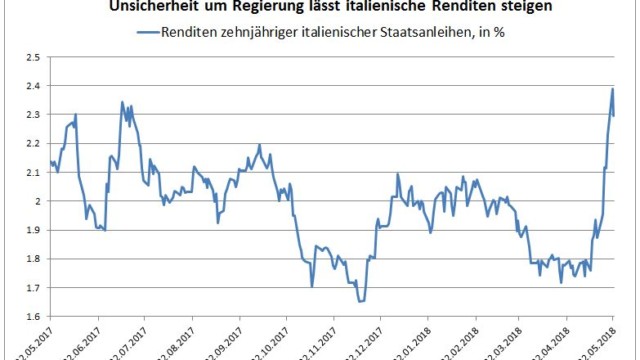 22.05.2018 Chart des Tages Unsicherheit um Italien. Die Finanzmärkte reagieren verunsichert auf die jüngste Wende im Ringen um eine italienische Regierung.