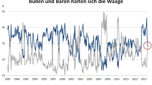 25.04.2018 Chart des Tages Patt zwischen Bullen und Bären. So schnell kann es gehen: Noch im Januar vermochte nichts das wohlige Gefühl der Börsianer zu trüben.