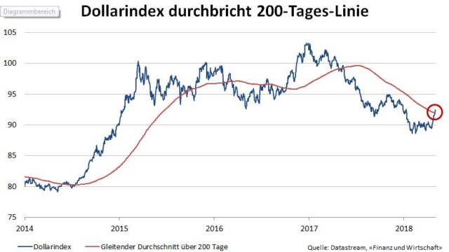 02.05.2018 Chart des Tages Der Dollar bäumt sich auf. Nach 252 Handelstagen hat es der Dollarindex endlich wieder geschafft: Am 1.