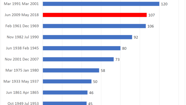 03.05.2018 Chart des Tages US-Wirtschaft ist auf Rekordkurs. Für Ökonomen kommt es einem historischen Ereignis gleich: Seit die Rezession im Sommer 2009 abgeklungen ist, befindet sich die amerikanische Wirtschaft diesen Mai 107 Monate auf Expansionskurs.