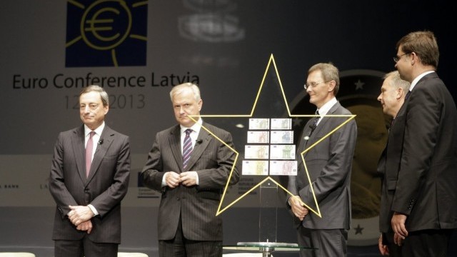 25.09.2013 Never Mind the Markets Das Wunder von Lettland EZB-Präsident Mario Draghi, EU-Kommissar Olli Rehn, der lettische Finanzminister Andris Vilks, der lettische Nationalbank-Chef Ilmars Rimsevics und Lettlands Premierminister Valdis Dombrovskis (v.l.n.r.) während der Euro-Konferenz in Riga, 12.