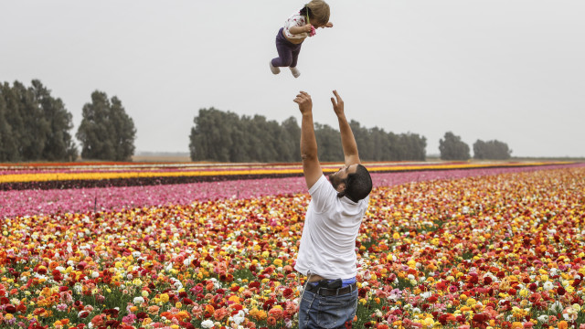 25.04.2017 Objektiv Sag’s mit Blumen Familienglück in reiner Blüte, üppige Blütenpracht auch auf den wohlbestellten Feldern mit weissem, gelbem, rotem Ranunkel – Hahnenfussgewächse, die als Schnittware exportiert werden.
