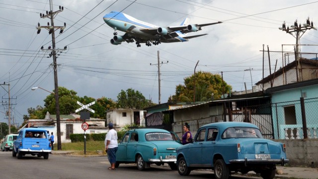 22.03.2016 Objektiv Cuba libre So elegant schwebt eine lahme Ente: Air Force One im Anflug auf den Flughafen von Havanna.