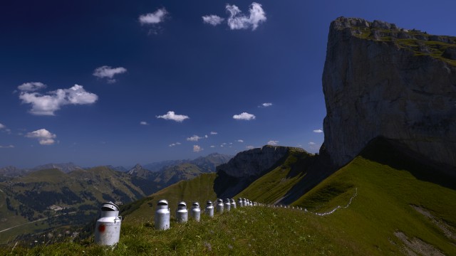 18.08.2015 Objektiv Grenzenlos «Bidons sans frontières», Milchkannen ohne Grenzen, nennt Gérard Benoit à la Guillaume diese Installation.