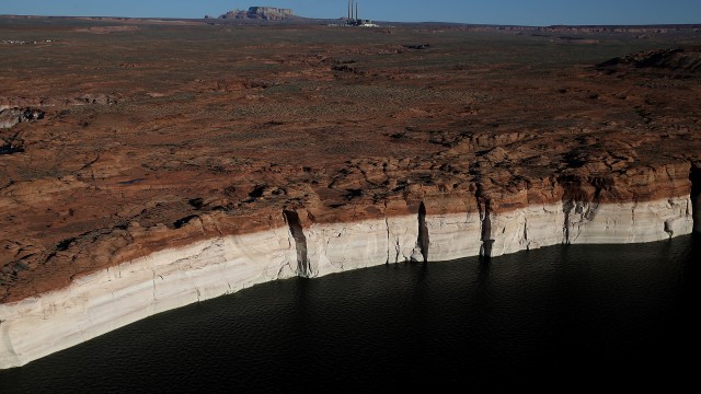 14.04.2015 Objektiv Wassernot Der ausgebleichte Fels steht für dahingegangene 58% des Stausees Lake Powell.