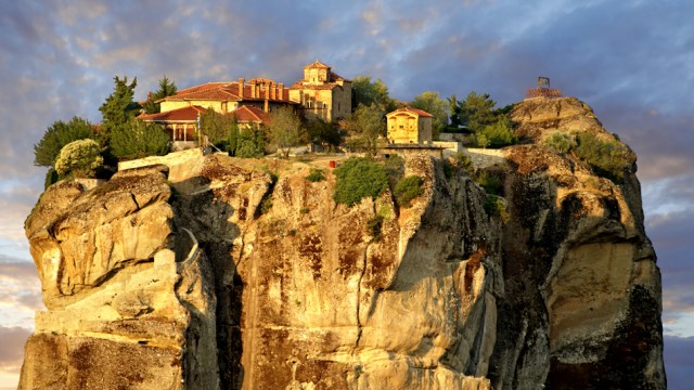 03.02.2015 Objektiv Abgehoben Was da frei im Raum zu schweben scheint, wie gemalt vom belgischen Surrealisten René Magritte, ist das Kloster Agía Triáda (Heilige Dreifaltigkeit).