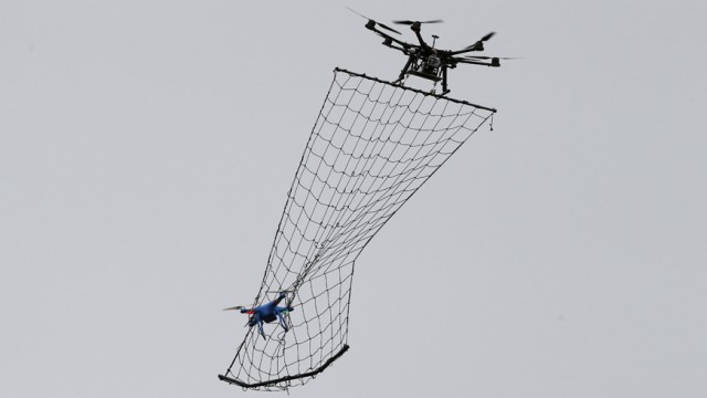 03.03.2015 Objektiv Luftkampf Eine Drohne des Typs DJI Phantom 2 geht einer Abfangdrohne des Typs Interceptor MP200 ins Netz.