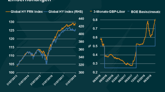 09.08.2018 M&G Bondvigilantes Überlebende des Handelskriegs: Hochzinsanleihen, FRNs Trotz zahlreicher Treffen der Zentralbanken, aus denen kaum Veränderungen hervorgingen – lesen Sie: Unterstützung für das Wirtschaftswachstum – gerieten globale Anleihenmärkte durch die permanenten Handelskriege, steigende Ölpreise sowie die auch weiterhin wenig überzeugenden US-Daten, die die Inflationserwartungen nach unten zogen, unter Druck.